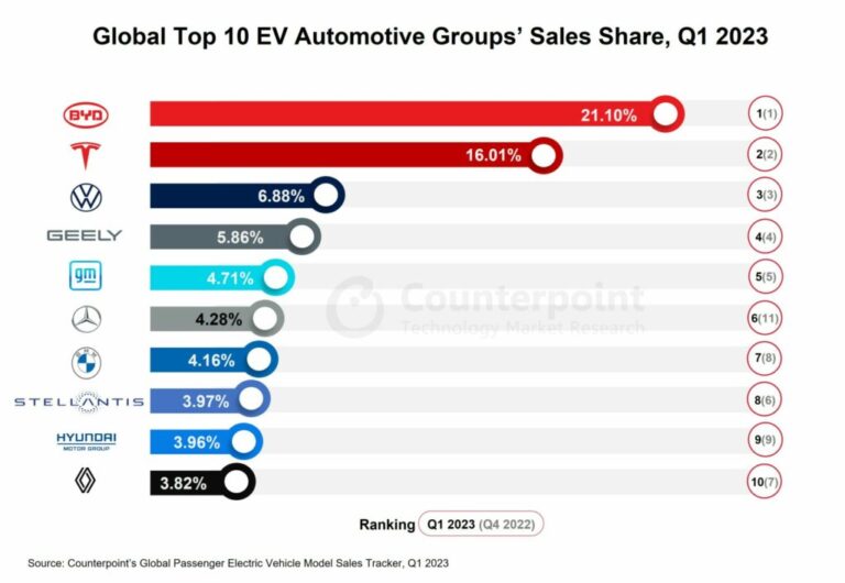 Nel 2022, le maggiori vendite sono dell’azienda americana Tesla seguita dalla cinese BYD (Beyond Your Dreams), molto distanti le aziende europee. In Italia è poco meno del 4%.
